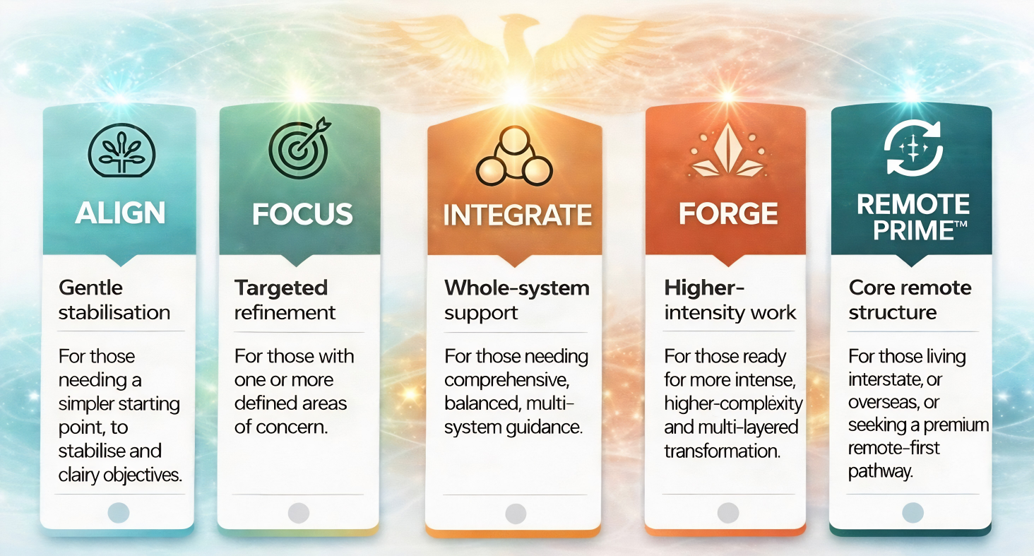 Whether you need a simpler starting point, more targeted guidance, broader whole-system support, a higher-intensity structure, or a remote-first pathway, the Pathways model creates clarity around what comes next. It is designed to make the process more coherent, more personalised, and easier to navigate over time.