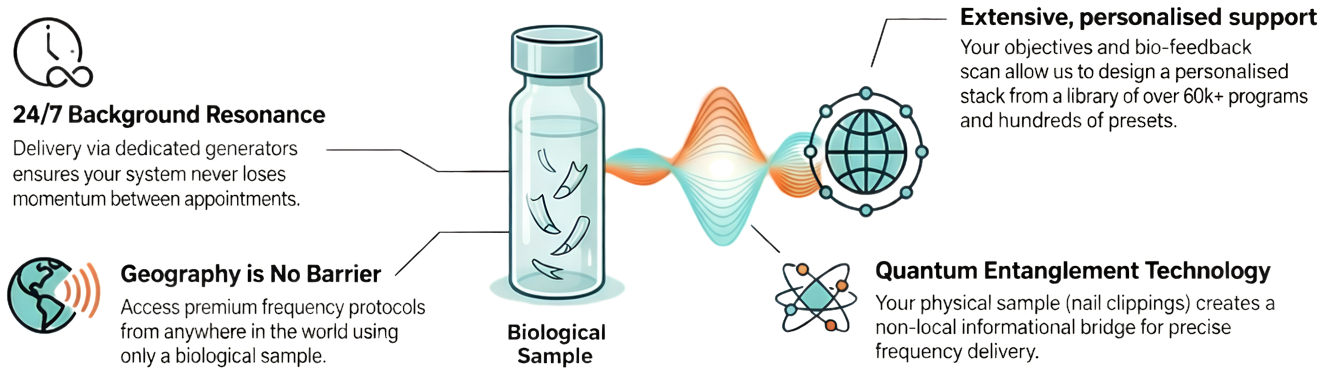 A more personalised Remote Service using a custom-built stack shaped around your current priorities, intake information, and where relevant, bio-feedback findings.